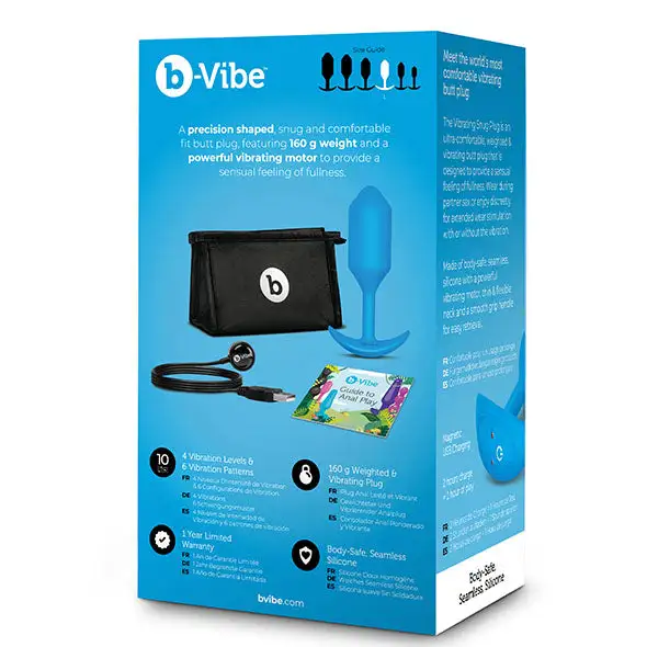 Vibrerende Snug Plugs worden geleverd in een designer verpakking en bevatten een handige opbergtas. We hebben ook niet één – maar twee handleidingen voor zowel nieuwkomers in anaal spelen als gevorderde gebruikers. De handleiding voor anaal van b-Vibe staat boordevol informatie over anaal spelen, terwijl onze handleiding voor vibrerende snugplugs nuttige tips bevat, inclusief hoe je je buttplug correct kunt plaatsen en verwijderen.